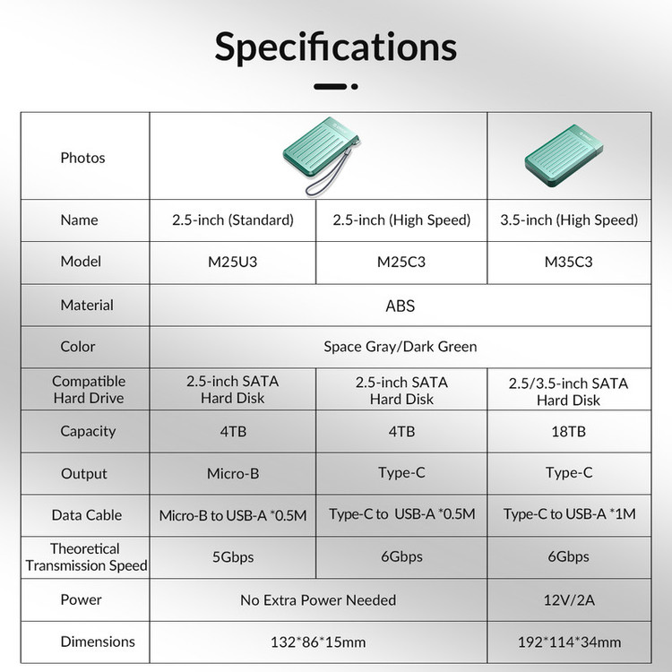 کابل: USB Type-A to USB Type-C سرعت انتقال داده: 6Gbps حداکثر هارد قابل پشتیبانی: 4 ترابایت