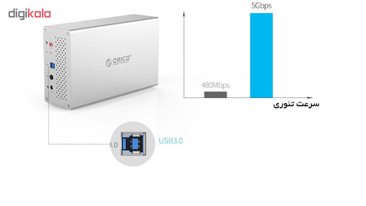 باکس 2 سینی هارد اوریکو مدل WS200RU3 یک باکس با کیفیت و کارآمد است. این کالا در 69 × 133 × 223 میلیمتر توسط شرکت اوریکو طراحی شده است و به راحتی قابلیت حمل دارد. رنگ روشن این محصول موجب شده است که با بیشتر کامپیوترها و لپ تاپ ها همخوانی داشته باشد. جنس این باکس تبدیل از آلیاژ آلومینیوم است و استفاده از آن به شما حس یک کالای با کیفیت را میدهد. این محصول دارای یک دستگیره برای جابه جایی آسانتر است. یک باکس تبدیل باید با دوام و با کیفیت باشد، باکس 2 سینی هارد اوریکو این ویژگی را دارد. این محصول دارای 2 سینی برای قراردهی هارد است و هر کدام از این سینیها قابلیت گنجایش 10 ترابایت را دارند، در نتیجه شما با خرید این محصول یک باکس با گنجایش 20 ترابایت خواهید داشت. این باکس قابلیت پشتیبانی از درایورهای SSD، 3.5 inch SATA HDD را دارد. رابط خروجی این کالا USB3.0 و Type-B است. استفاده از USB 3.0 موجب افزایش سرعت انتقال اطلاعات گردیده است. فناوری USB3.0 از سال 2010 تا به امروز وارد دنیای کامپیوتر و وسایل دیجیتال شده است.این باکس دارای سرعت مطلوبی برای استفاده های شخصی و روزانه است. سرعت انتقال این کالا در حالت اسمی 5Gbps,up to 10 Gbps Under Radio Mode اعلام شده است. منبع تغذیه این باکس یک آداپتور 12v است. باکس 2 سینی هارد اوریکو مدل WS200RU3 قابلیت گنجایش و پشتیبانی از 20 ترابایت را دارد که با این میزان شما احتیاجی به خرید باکس دیگری نخواهید داشت. یکی از ویژگیهای این کالا نصب و راه اندازی آسان است. امروزه با تنوع لپ تاپ ها و سیستم عاملها یک کالایی که به راحتی با تمامی سیستم ها همخوانی داشته باشد بسیار ارزشمند است. این باکس قابلیت راهاندازی بر روی ویندوز، مک و لینوکس را دارد، نحوه نصب و راهاندازی این مدل به صورت مکانیکی است و شما به آسانی میتوانید از این کالا استفاده کنید.