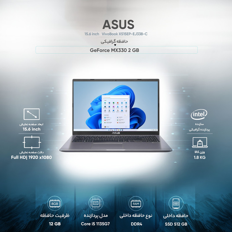 سایر توضیحات پردازنده مرکزی (CPU) : 4 هسته / 8 رشته / دارای پردازنده مجتمع گرافیکی Iris Xe اینتل