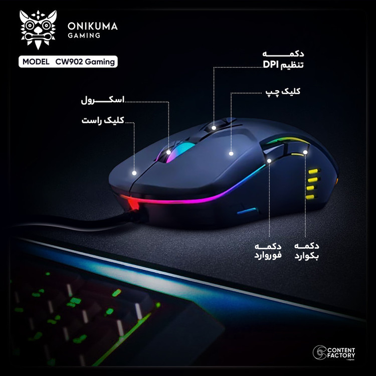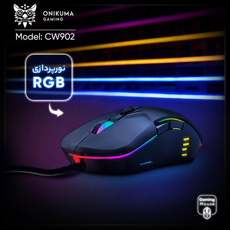 برند اونیکوما به عنوان یک برند معتبر و مورد اعتماد در دنیای گیمینگ شناخته میشود و توانسته است با ارائه محصولات با کیفیت و عملکرد برتر، رضایت مشتریان خود را جلب کند.ماوس های مخصوص بازی اونیکوما مدل CW902 برای تجربه فوقالعاده در بازیها و استفاده روزمره مناسب هستند. ماوس گیمینگ اونیکوما مدل CW902 با وزن ۱۰۰ گرم از ماوسهای با کیفیت و عملکرد بالا است که بهخوبی برای بازیهای رایانهای مناسب بوده و دارای ابعاد ۱۰۰x۳۰x۱۵۰ میلیمتر است. این ماوس دارای یک عدد کلید است و اتصال آن با سیم و از طریق رابط USB برقرار می شود. از ماوس مذکور می توانید در هر سطحی مثل چوب ، فلز و شیشه استفاده کنید چراکه از حسگر اپتیکال و دقت بالای ۳۲۰۰ DPI برخوردار است. طول کابل این ماوس ۱۵۰ سانتیمتر است و همچنین دارای قابلیت نورپردازی RGB بوده که زیبایی و جذابیت ظاهری زیادی را به این ماوس اضافه میکند. با توجه به ویژگیها و امکانات متنوعی که ماوس مخصوص بازی اونیکوما مدل CW902 دارد، میتوان گفت که این ماوس یک گزینه عالی برای علاقمندان به بازیهای رایانهای است.