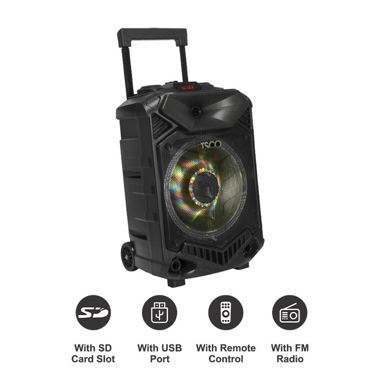 اسپیکر «TS 1900» یکی از محصولات رده بالای شرکت «تسکو» است که به صورت بیسیم طراحی و تولید شده است. این اسپیکر از طریق جک 3.5 میلیمتری صدا، بلوتوث، شیار کارت حافظه و پورت USB به دستگاه مورد نظرتان متصل خواهد شد؛ بنابراین شما میتوانید این اسپیکر را با استفاده از جک 3.5 میلیمتری صدا یا بلوتوث به گوشی موبایل، تبلت یا لپتاپ خود متصل کنید؛ همچنین این امکان برایتان وجود دارد که این اسپیکر را با استفاده از جک 3.5 میلیمتری صدا به کامپیوترتان هم وصل کرده و از صدای باکیفیت آن لذت ببرید. در این مدل از اسپیکرهای تسکو، پورت USB و شیار کارت حافظه هم تعبیه شده است؛ بنابراین در صورت نیاز میتوانید کارت حافظه یا فلشمموری خود را هم به این اسپیکر وصل کرده و فایلهای صوتی ذخیرهشده در آنها را با استفاده از اسپیکر اجرا کنید؛ البته باید توجه داشته باشید که این مدل از محصولات تسکو تنها قابلیت پشتیبانی از فایلهایی با پسوند MP3، WMA، WAV و FLAC را دارد و اگر پسوند فایلتان با این موارد متفاوت باشد، توسط اسپیکر اجرا نخواهد شد؛ همچنین باید به این موضوع هم توجه داشته باشید که حداکثر برد بلندگو در این مدل 10 متر است و اگر فاصلهی میان دستگاه متصلشده به اسپیکر توسط بلوتوث بیشتر از 10 متر شود، ارتباط به صورت خودکار قطع خواهد شد. پس اگر به دنبال یک اسپیکر قدرتمند هستید که قیمت مناسبی هم داشته باشد، مدل TS 1900 از محصولات تسکو انتخاب مناسبی خواهد بود.