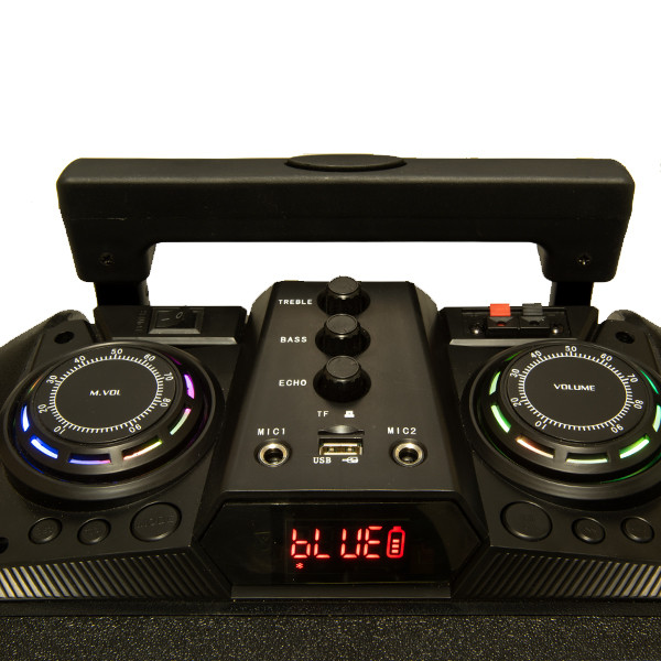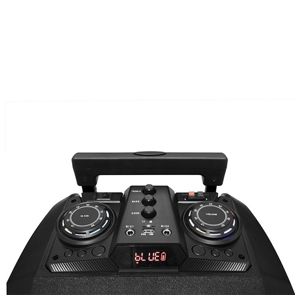 - بهرهمندی از نورپردازی LED - نمایشگر عملکرد اسپیکر - قابلیت رکورد (ضبط) - دارای دو ورودی میکروفون - مدت زمان شارژ باتری: 6 ساعت - بدنه پلاستیکی - bt /usb /sd /fm / 3.5mm Aux in ,Wired Microphone، Wireless Microphone - rms=50w و pmpo=6000w