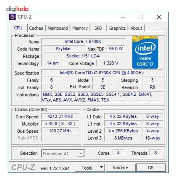 پردازنده مرکزی Core i7-6700K شرکت اینتل (Intel)، جز ششمین نسل از پردازندههای این شرکت است که با استفاده از معماری اسکایلیک (Skylake) ساخته شدهاند. این سری از پردازندههای اینتل با فناوری ساخت (لیتوگرافی) 14 نانومتر تولید شدهاند که به مصرف توان کمتر و بازده بیشتر منجر میشود. برای نصب این پردازنده همانند تمام پردازندههای سری اسکایلیک به مادربردی با سوکت LGA 1151 اینتل و چیپست Z170 نیاز خواهید داشت. این پردازنده مرکزی دارای 4 هسته پردازشی و 8 رشته (Thread) است. با وجود 4 هسته، پردازنده میتواند چندین برنامه بهصورت همزمان اجرا کند و عملکرد کلی سیستم هم دچار افت نشود؛ در حالی که استفاده از 8 رشته باعث میشود پردازنده بتواند وظایف محوله را بهصورت موازی پیش ببرد و به سرعت بالاتر سیستم کامپیوتری منجر شود. فرکانس مرجعی که Core i7-6700K در آن فعالیت میکند 4 گیگاهرتز است که با وجود فناوری کمکی2.0 Turbo Boost، پردازنده قادر است خود را تا فرکانس 4.2 گیگاهرتز هم بالا بکشد. 8 مگابایت حافظه کش سطح سه (L3) هم در این پردازنده به کار رفتهاست. حافظه کش سطح سه که اینتل آنرا Smart Cache مینامد، با به وجود آوردن حافظهیای بسیار سریع جهت ذخیرهسازی دادههایی که در صف پردازش هستند، به پردازنده کمک میکند عملکرد و سرعت کلی خود را تا آنجا که میتواند ارتقا دهد. نقطه قوت این پردازنده در ضریب مولتیپلایر باز (Unlocked) آن است. سری K پردازندههای اینتل دارای مولتیپلایر باز هستند و به یمن وجود چنین قابلیتی، میتوانید با خیال راحت و سطح بالایی از آزادی عمل، پردازنده خود را اورکلاک کنید و به سرعت بالاتری دست پیدا کنید. پردازنده Core i7-6700K اینتل میتواند حداکثر 64 گیگابایت حافظهی رم DDR4 با فرکانسهای 1866 / 2133 مگاهرتز و DDR3L با فرکانسهای 1333 / 1600 را آدرسدهی کند تا بتوانید از حداکثر توان پردازنده خود استفاده کنید. وجود پردازندهی گرافیکی Intel HD Graphics 530 و پشتیبانی از مجموعه دستورالعملهای SSE4.2 و AVX 2.0 و سری جدید دستورالعملهای AES نویدبخش بروز بودن پردازنده و پشتیبانی آن از API های جدید برنامهنویسی است. قدم اول برای داشتن یک سیستم کامپیوتری قدرتمند، انتخاب یک پردازنده مناسب است. پردازنده Core i7-6700K برای کامپیوتر مخصوص بازی کردن و اجرای جدیدترین بازیها با حداکثر جزییات توصیه میشود. علاقمندان به اورکلاک و ادیت فیلم و طراحان هم میتوانند پردازنده Core i7-6700K را به عنوان یک انتخاب عالی مد نظر داشتهباشند.