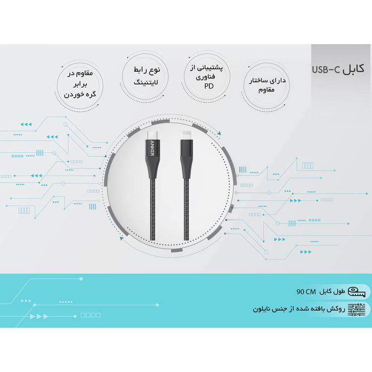 سایر توضیحات کابل: روکش بافته شده از جنس نایلون